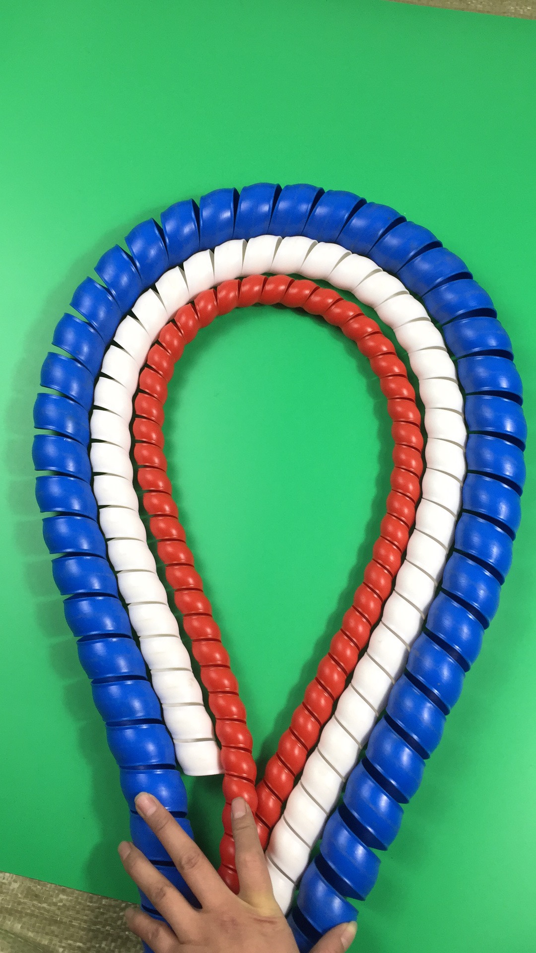 螺旋保護套是一種以聚丙烯(PP)、聚乙烯(PE)或尼龍(PA)為原料,采用熱態(tài)纏繞定型擠出工藝制成的螺旋狀護套。是一種替代傳統(tǒng)膠管保護用金屬護簧的新型產(chǎn)品。別名:膠管保護套、電線電纜保護套、軟管護套等。